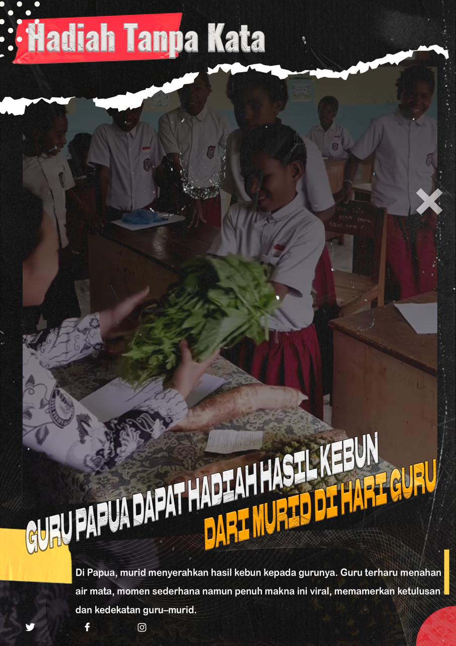 Peristiwa ini menegaskan bahwa guru adalah cahaya bangsa, bahkan di pelosok terpencil. Hadiah hasil kebun bukan sekadar pemberian, melainkan simbol bahwa pendidikan di Papua tumbuh dari tanah sendiri, dari keringat keluarga, dan dari cinta murid kepada gurunya.