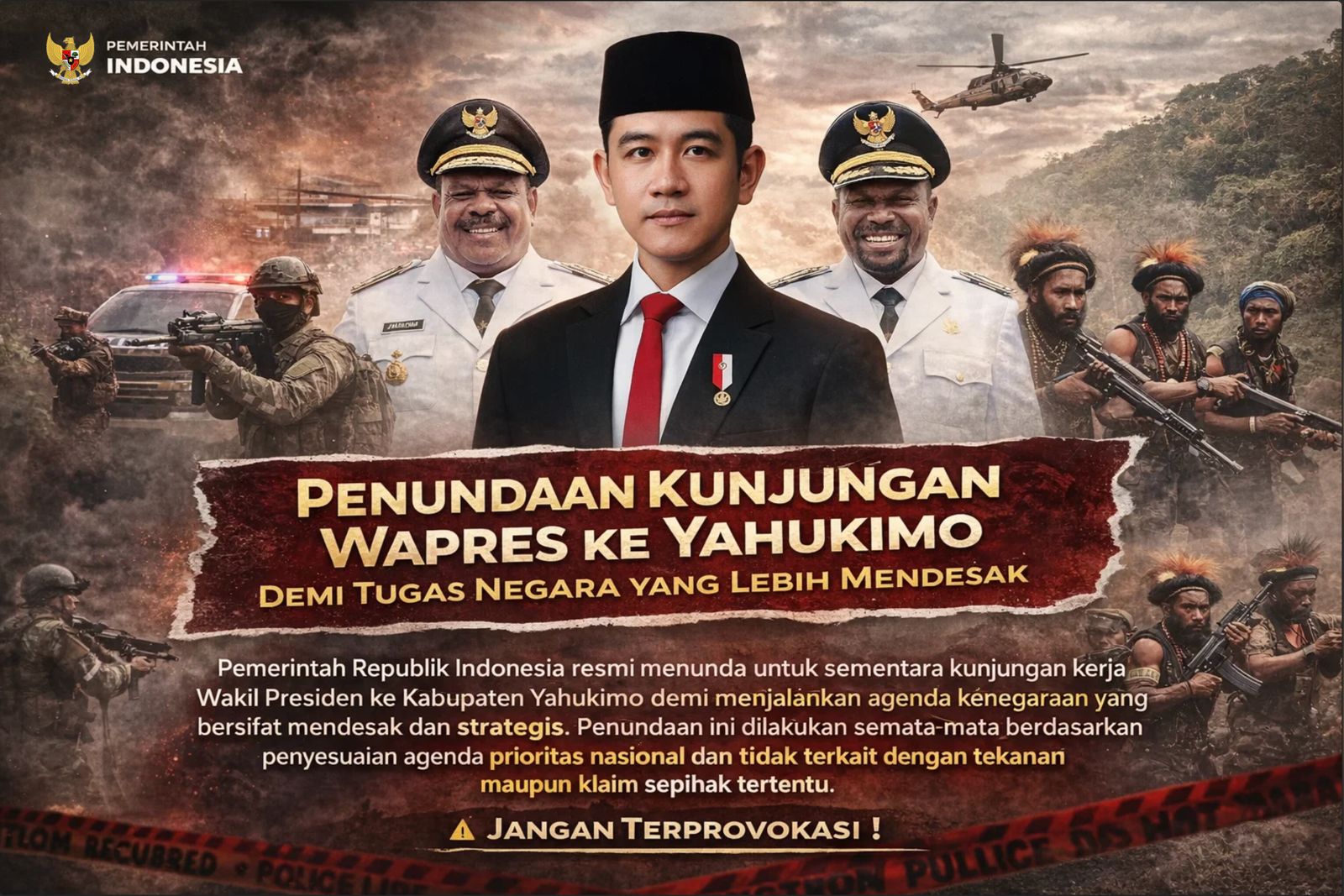 Pemerintah menegaskan bahwa penundaan ini tidak berkaitan dengan tekanan maupun klaim sepihak dari kelompok tertentu. Klaim TPNPB-OPM Kodap XVI Yahukimo terkait upaya menggagalkan kunjungan kerja Wakil Presiden RI serta narasi baku tembak berkelanjutan dinilai sebagai propaganda yang bertujuan menebar ketakutan di tengah masyarakat.