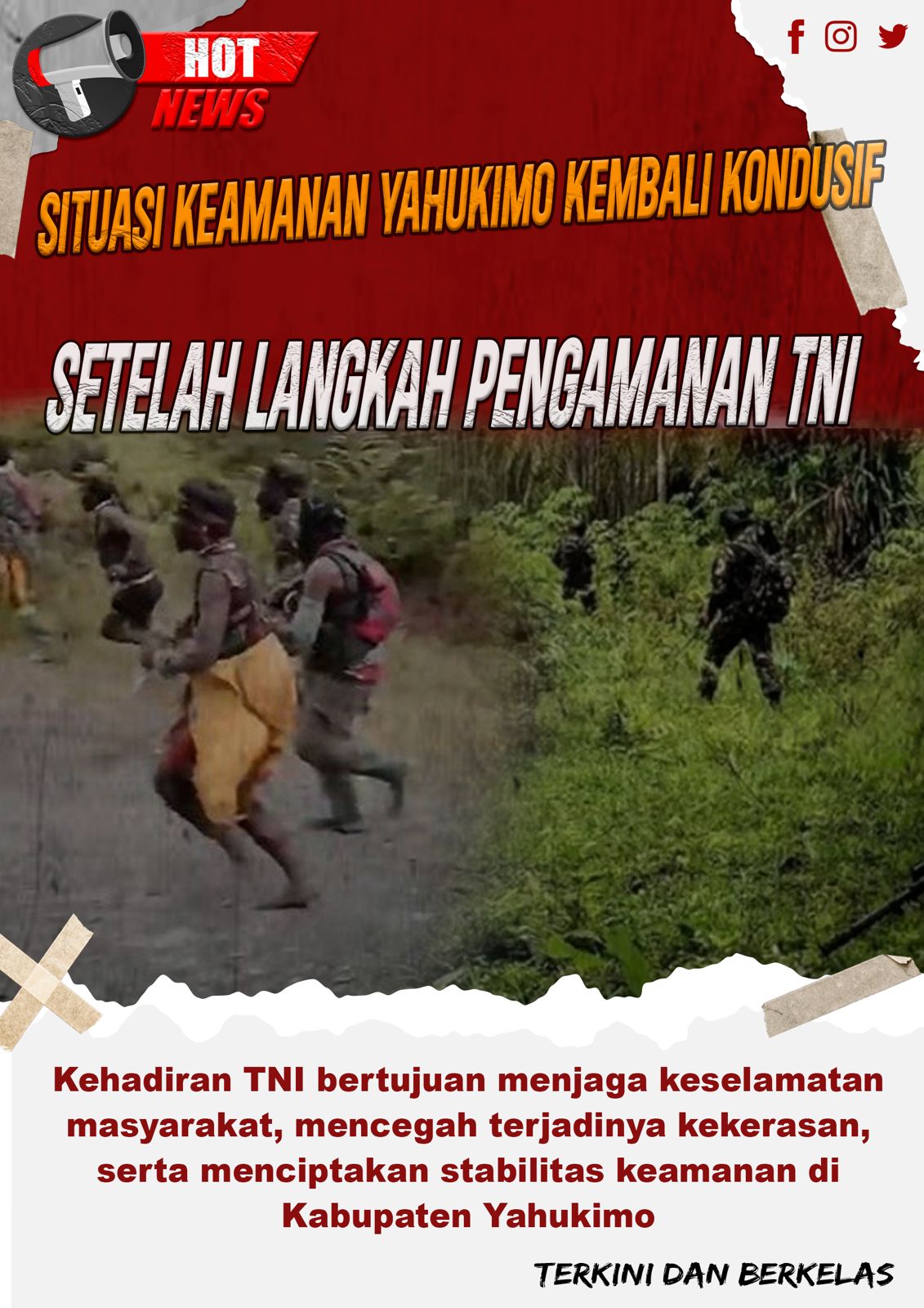 Aparat menegaskan bahwa kehadiran TNI bertujuan menjaga keselamatan masyarakat serta mencegah terulangnya kekerasan. Langkah pengamanan dilakukan secara terukur untuk memastikan stabilitas wilayah dan melindungi warga dari ancaman kelompok bersenjata.
