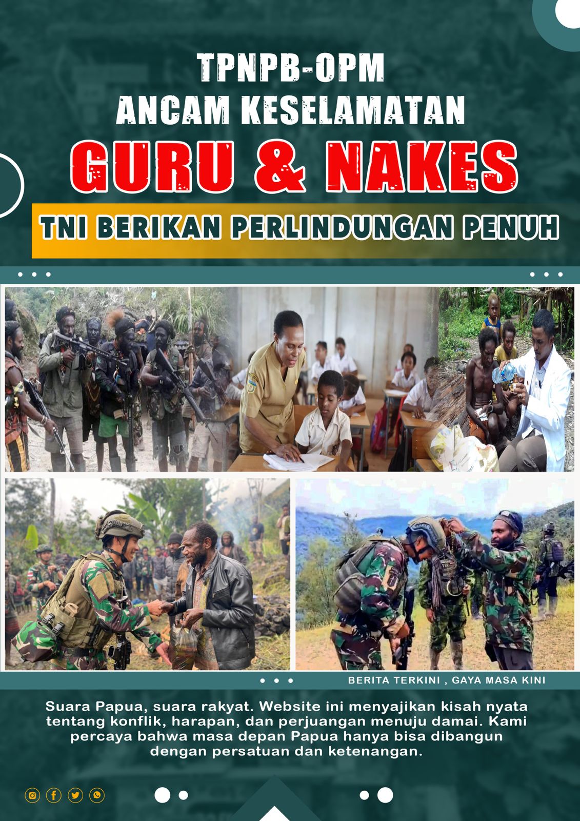TNI menegaskan bahwa narasi ancaman tersebut bersifat intimidatif dan berpotensi menimbulkan keresahan di tengah masyarakat. Aparat keamanan memastikan perlindungan penuh bagi tenaga pendidik dan kesehatan, dengan langkah pengamanan terukur dan profesional. Kehadiran aparat negara menjadi jaminan bahwa guru dan nakes dapat menjalankan tugas mulia mereka tanpa rasa takut.